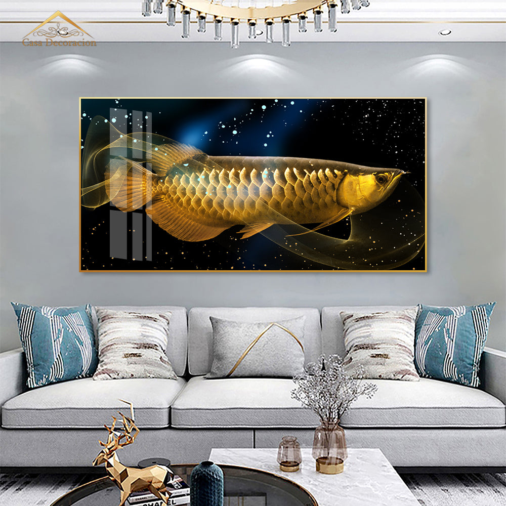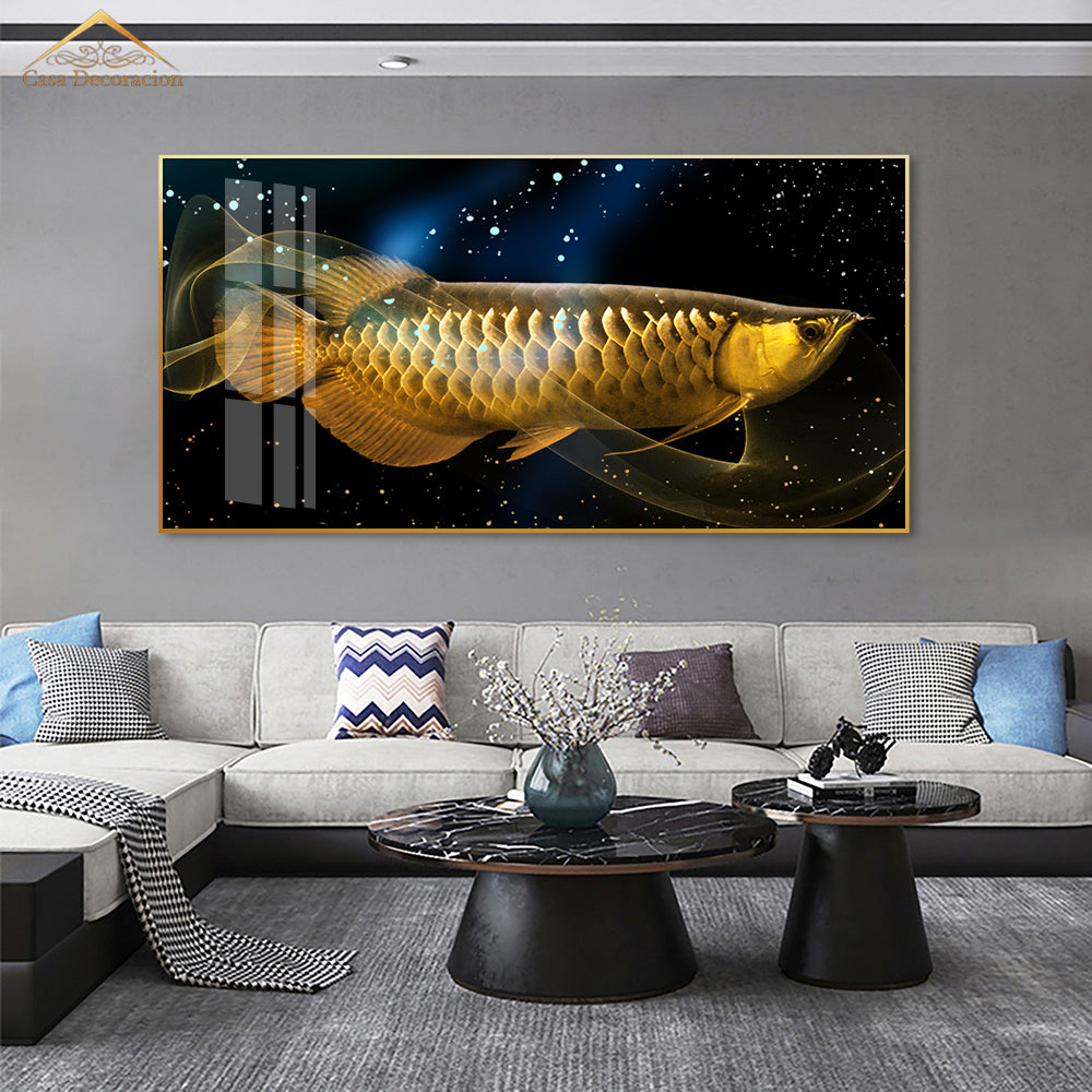 Golden Arwana Horizontal Crystal Painting (160x80cm)