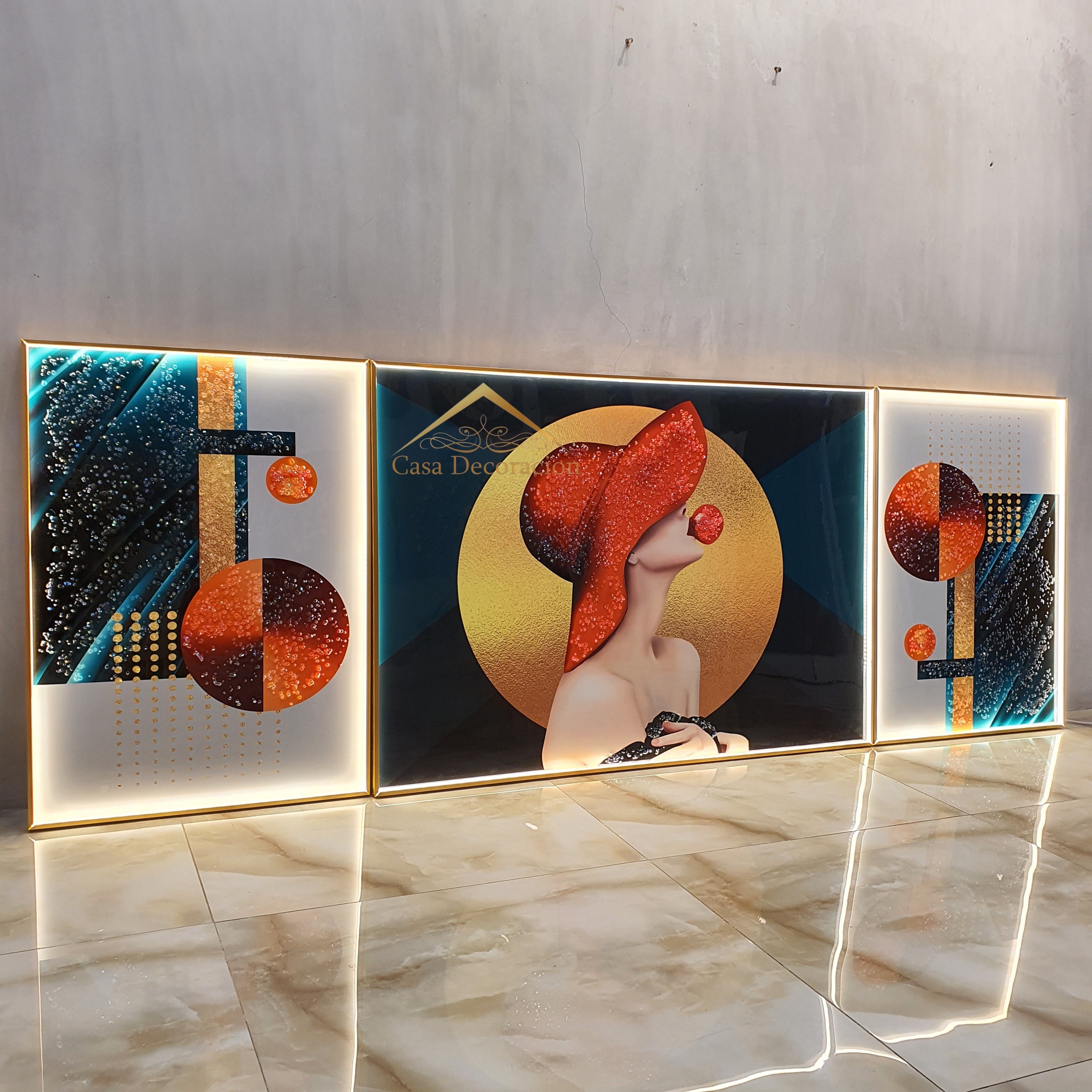 3 Piece Figurative Lady Crystal Painting