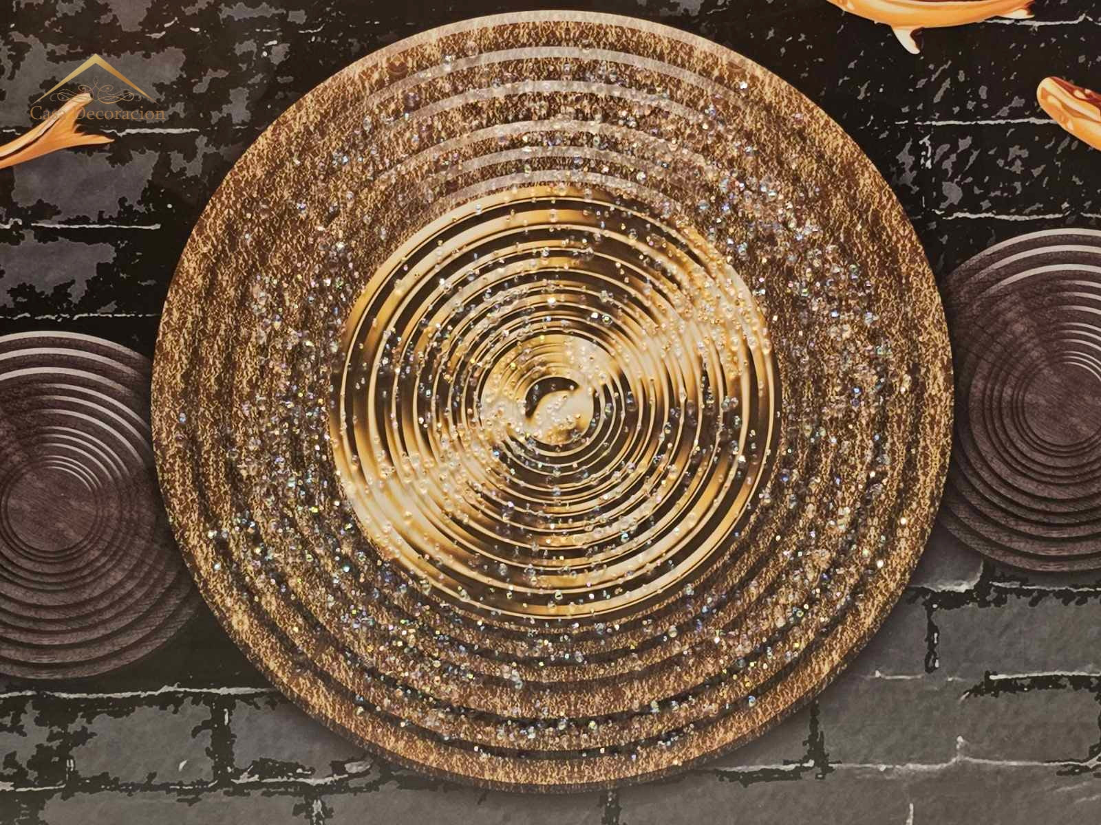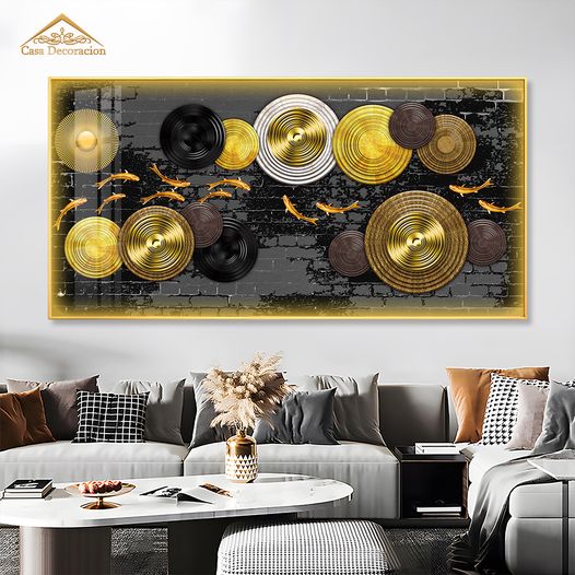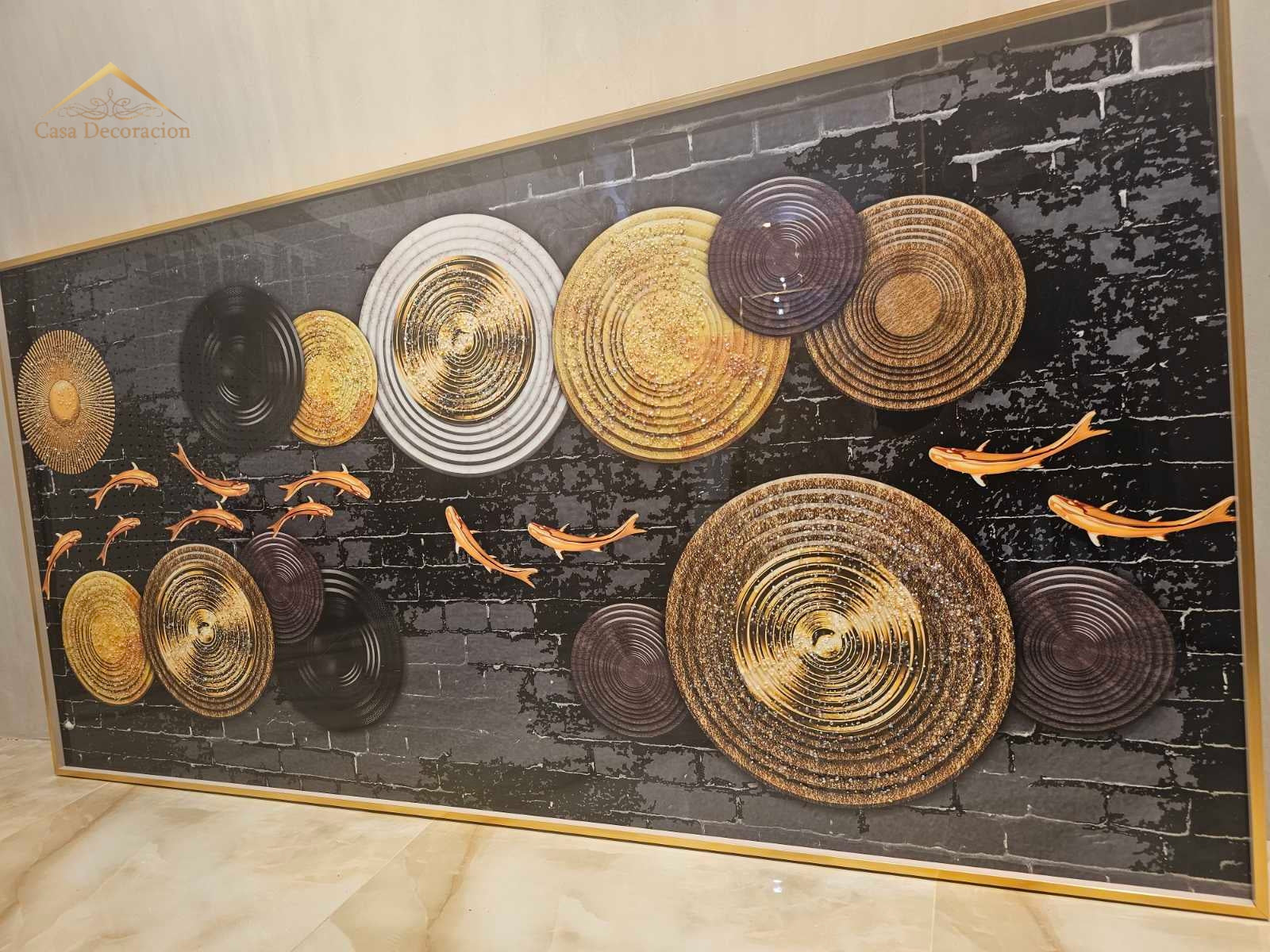 Golden Koi Fishes Horizontal Frame 3d Embossed Beads W/ LED Light